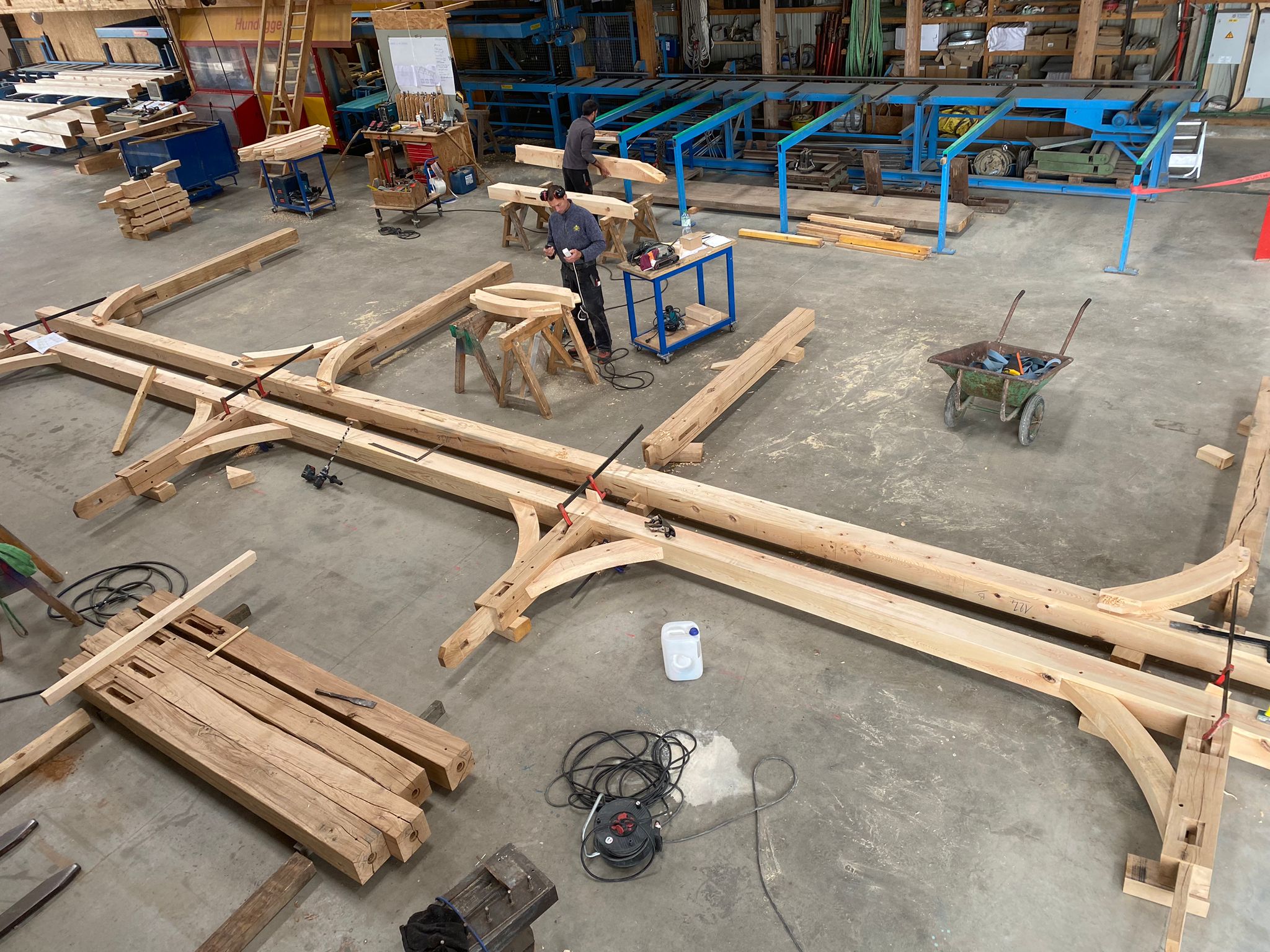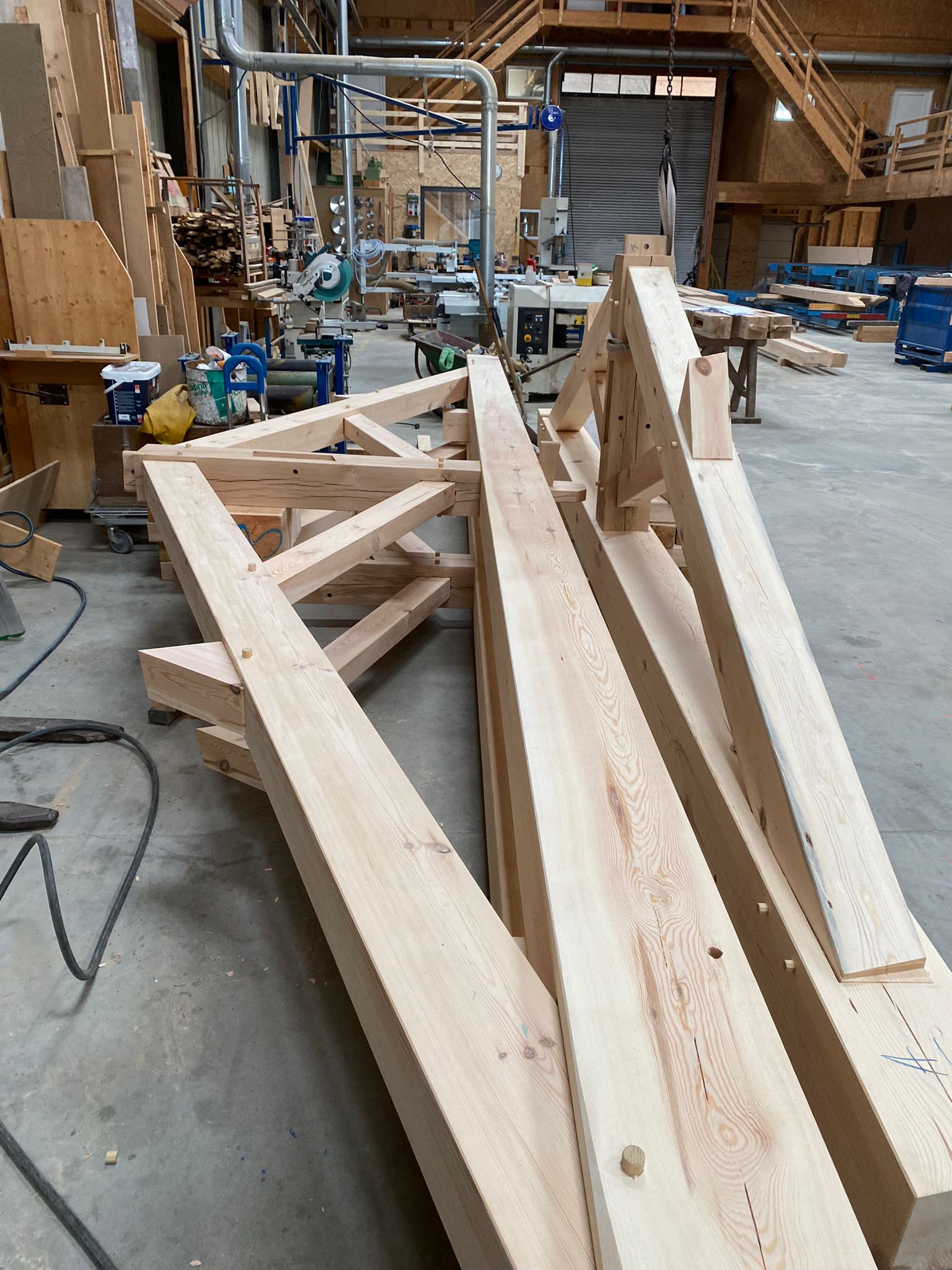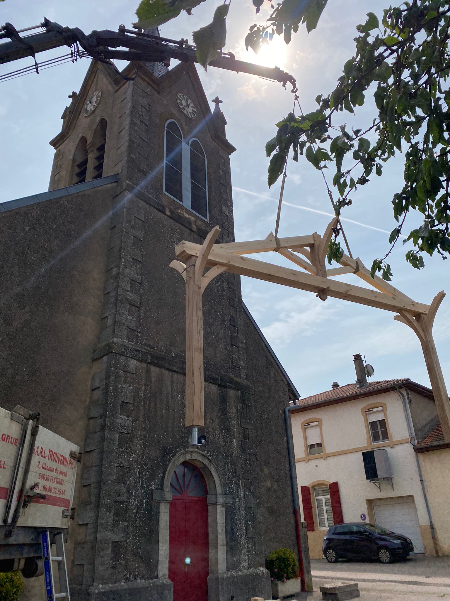 Création d’un auvent traditionnel sur une place à coté de l’église de Thimonville.