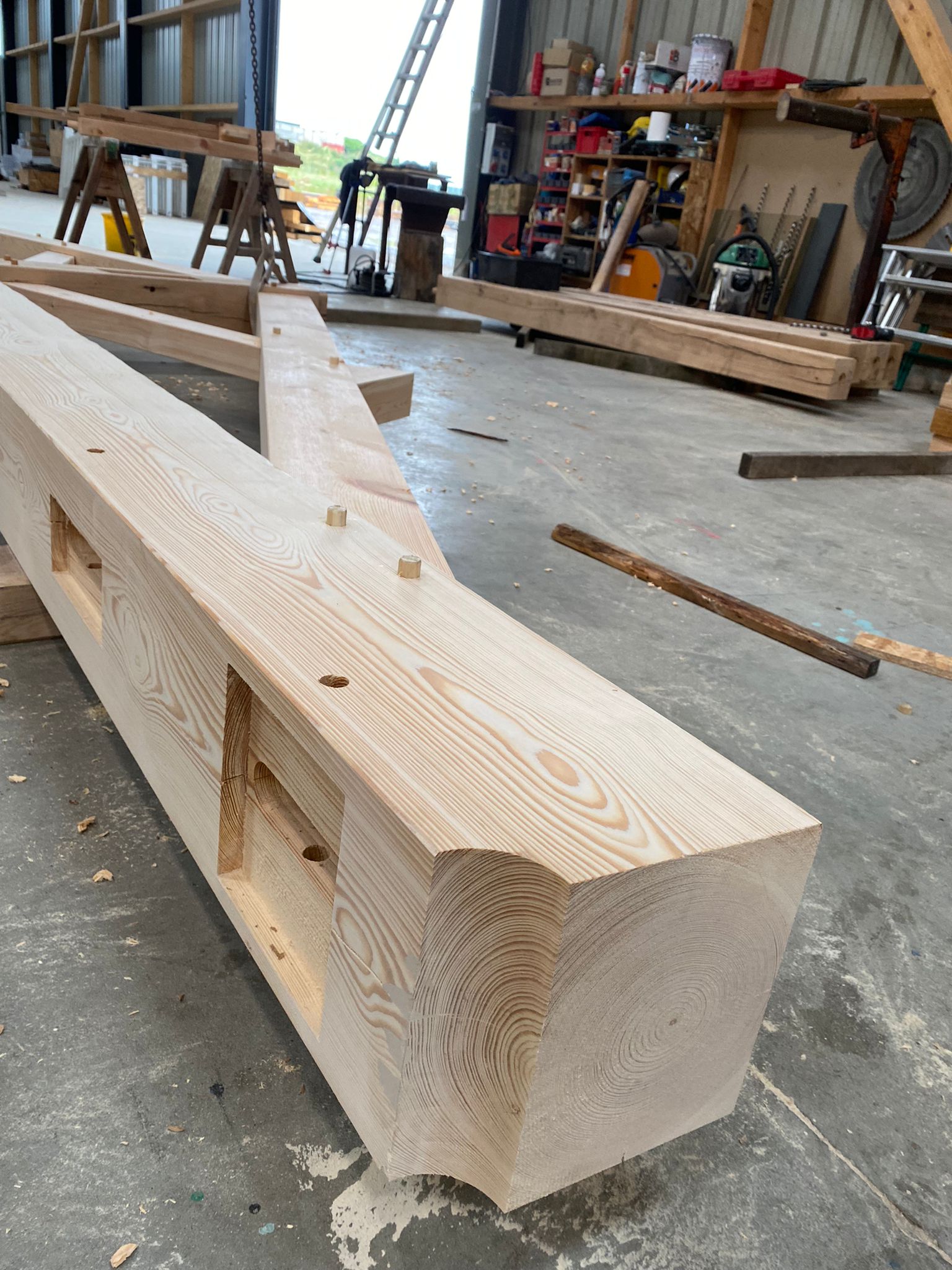 Poteaux chêne et charpente en Pin, c’est une jolie combinaison d’essences pérennes et esthétiques. Ce auvent sera un espace convivial pour accueillir au sec tous les rassemblements.