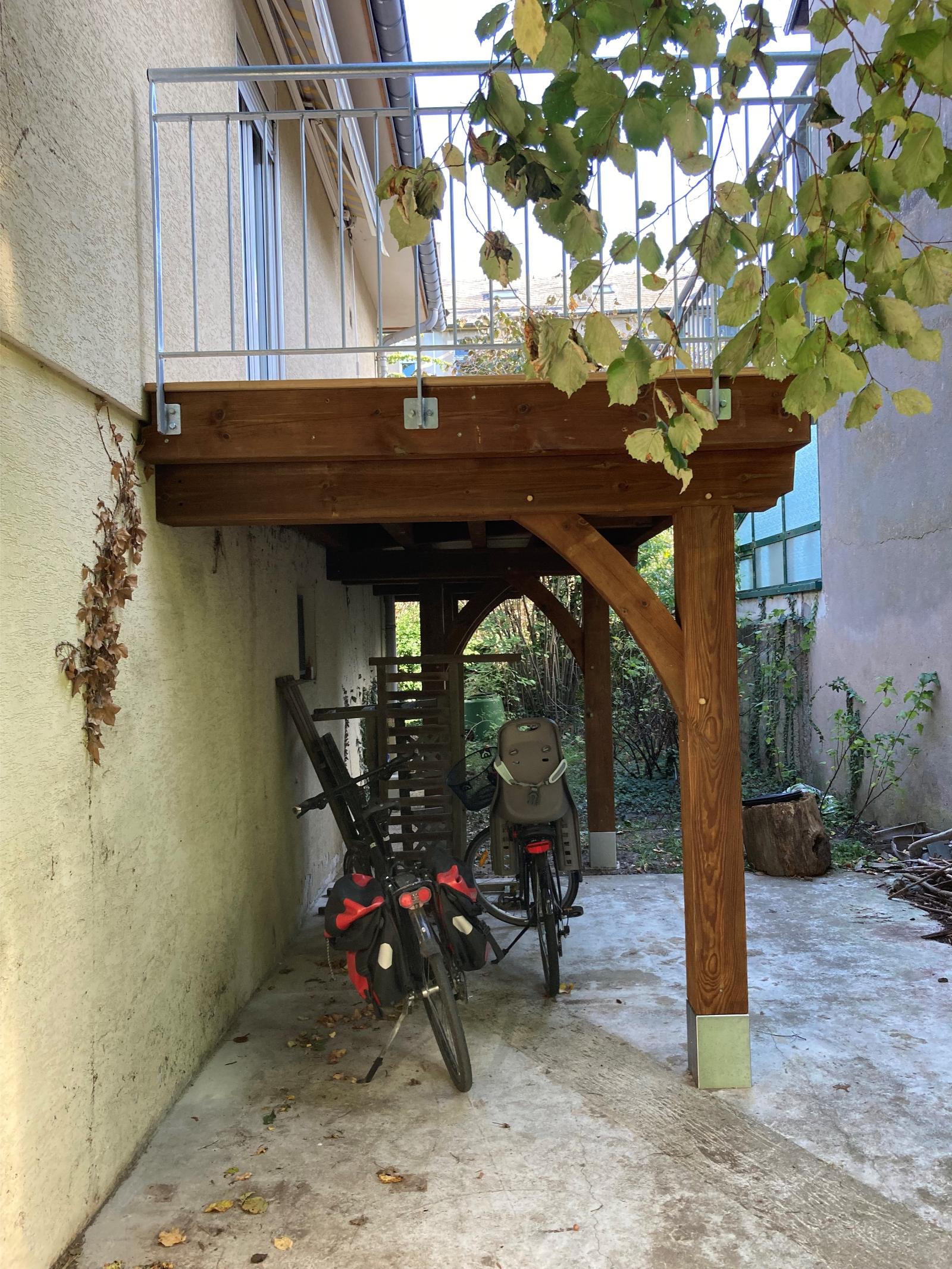 Nous avons proposé à notre client l’association du bois et du métal pour cette réalisation qui offre un rendu très esthétique et une solution durable.
